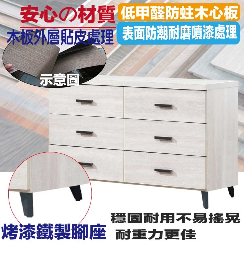 【綠家居】艾曼淺橡4尺六抽斗櫃