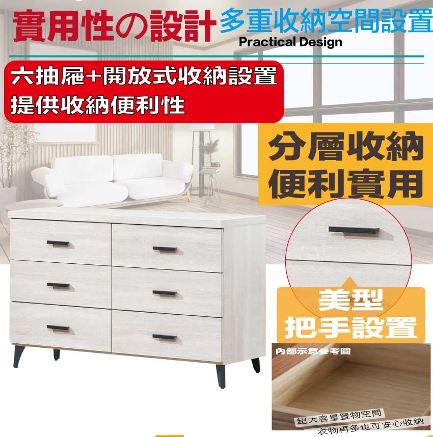 ★偏遠地區需額外加收運費,下標請先問與答詢問★ ★下訂前注意 由於商品流動較快,下訂前請先詢問是否有貨在下訂喔~★ 【綠家居】艾曼淺橡4尺六抽斗櫃 淺橡木紋色系+安心材質製造,使用放心+搭配居家更便利,採用防蛀木心板+五金滑軌結構+烤漆五金腳座等安心材質製造 ,外層採用防潮耐磨噴漆處理搭配採用六抽屜+開放桌面等收納空間設計,全由專人配送到家,專業安心服務,替你省下更多時間!