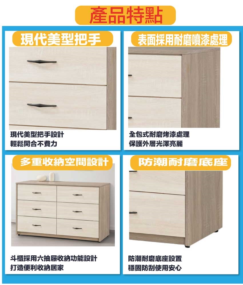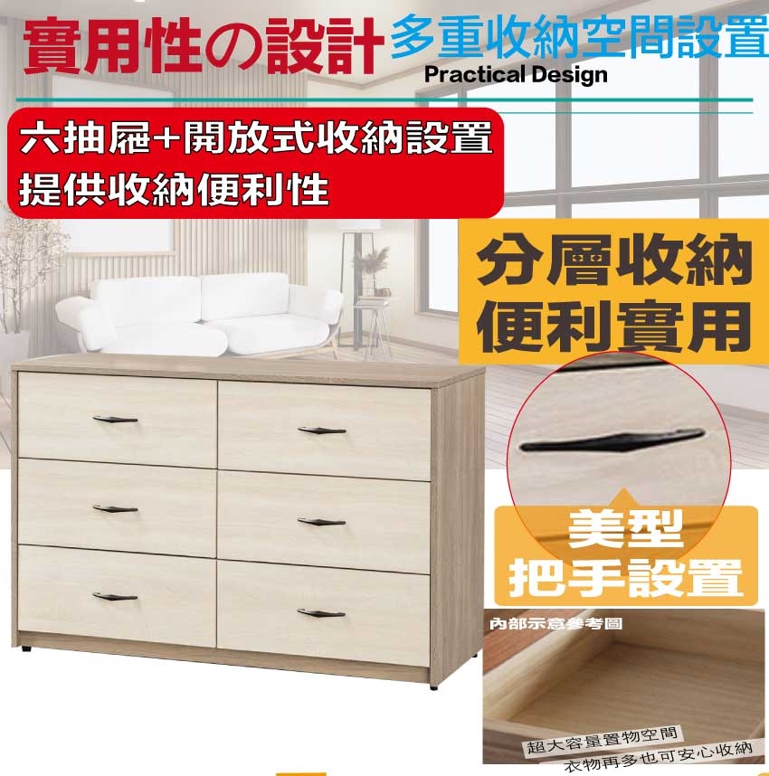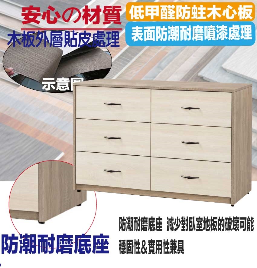 - ◆產品名稱:【綠家居】高利雙色4尺六抽斗櫃
