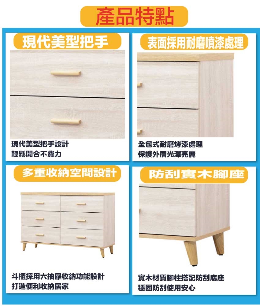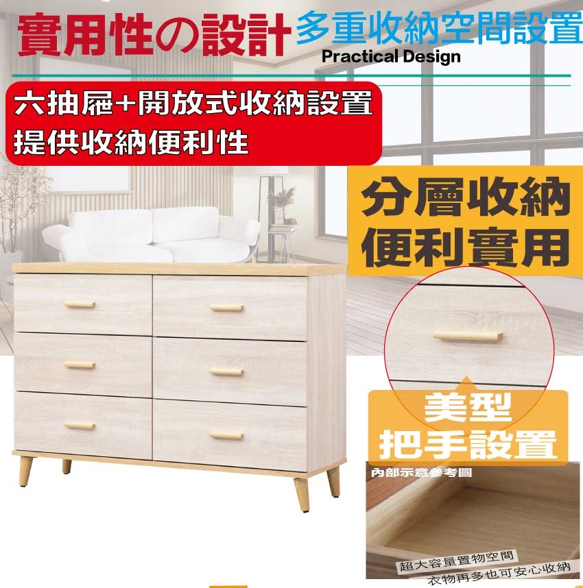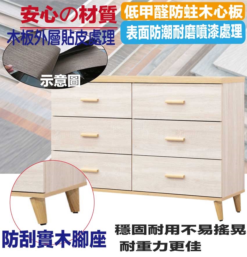 - ◆產品名稱:【綠家居】莎利雙色4尺六抽斗櫃