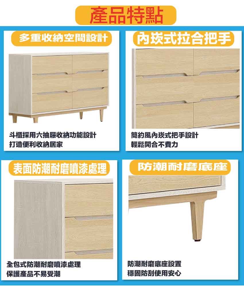 - ◆產品名稱:【綠家居】菲可4尺六抽雙色斗櫃
