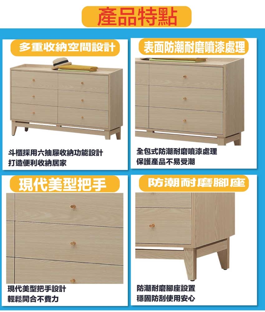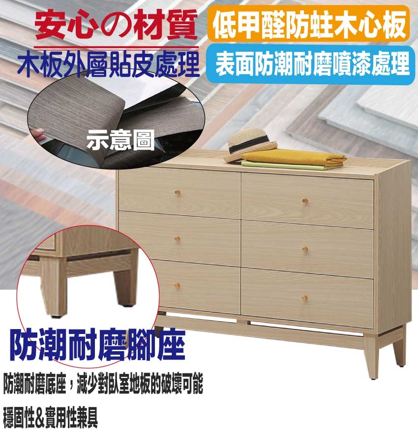 - ◆產品名稱:【綠家居】萬斯4尺六抽斗櫃