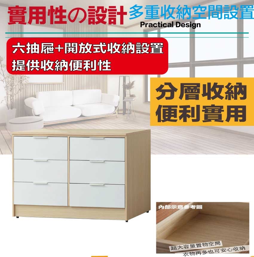 ★偏遠地區需額外加收運費,下標請先問與答詢問★ ★下訂前注意 由於商品流動較快,下訂前請先詢問是否有貨在下訂喔~★ 【綠家居】普伊斯4尺六抽斗櫃(二色可選) 二色可選+安心材質製造,使用放心+搭配居家更便利,採用防蛀木心板+防潮耐磨底座+五金滑軌結構等安心材質製造 ,外層採用防潮耐磨噴漆處理搭配採用六抽屜+開放層格等收納空間設計,全由專人配送到家,專業安心服務,替你省下更多時間!