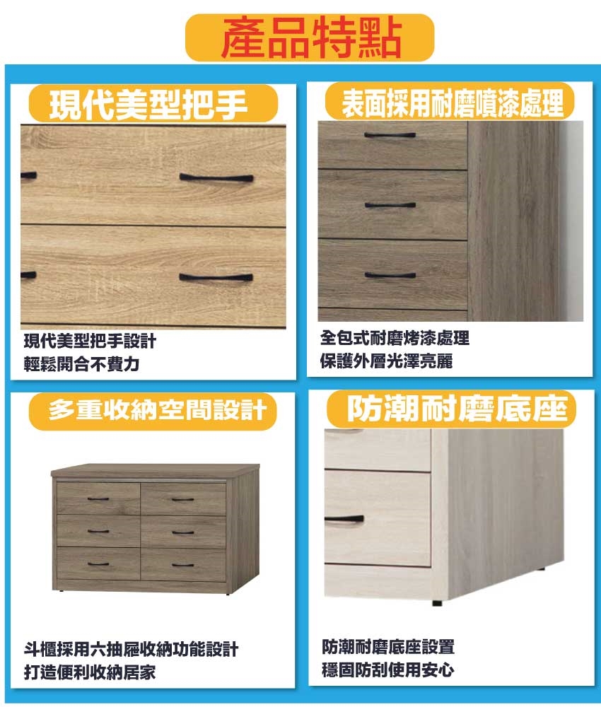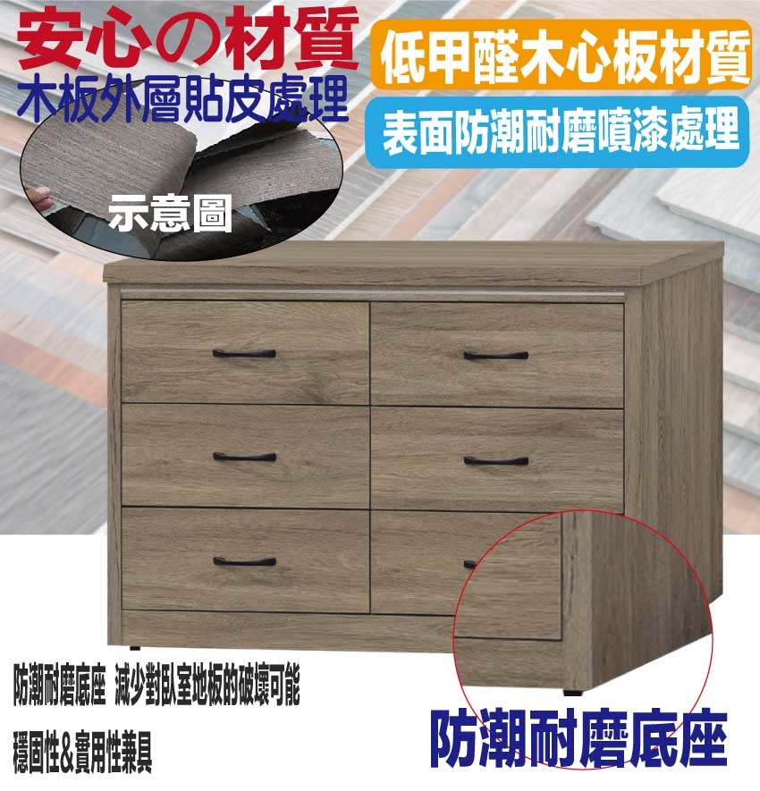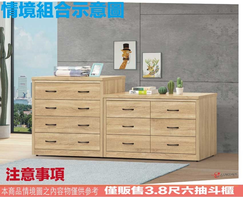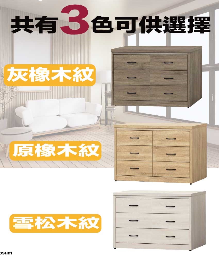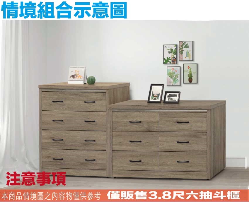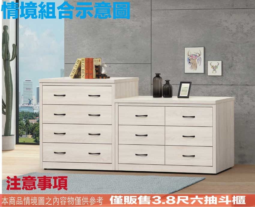 - ◆產品名稱:【綠家居】艾悠3.8尺六抽斗櫃(三色可選)