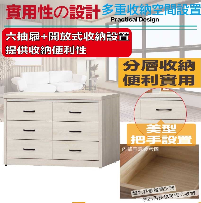 【綠家居】艾悠3.8尺六抽斗櫃(三色可選)