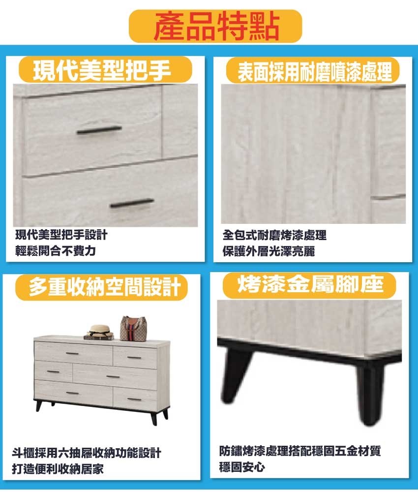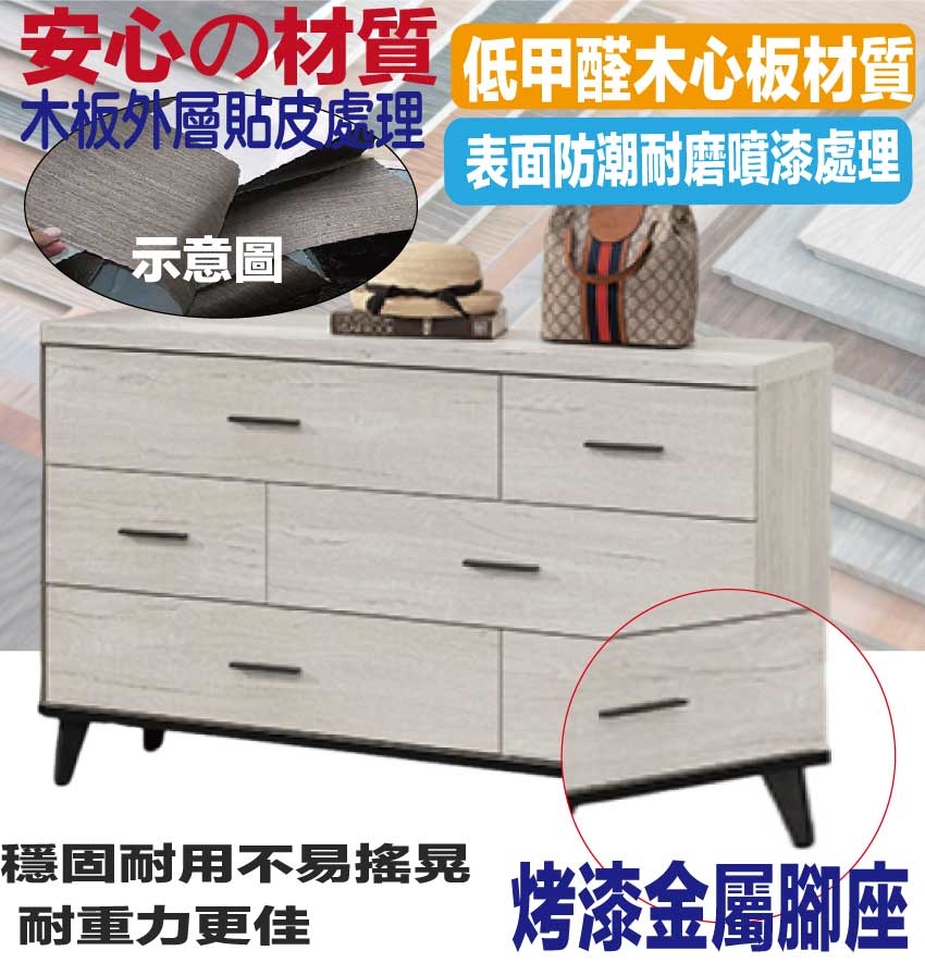 - 產品名稱:【綠家居】凱曼4尺六抽斗櫃