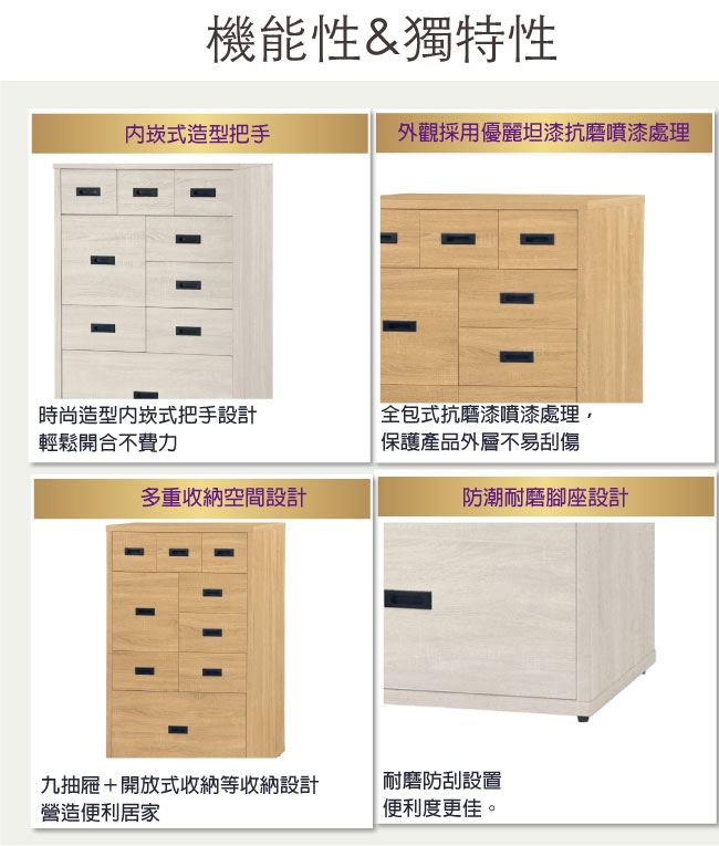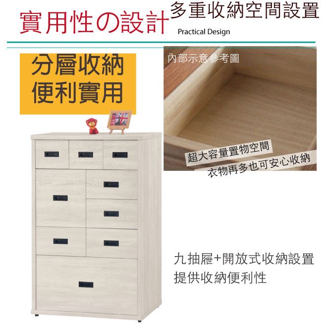- 九抽屜+開放式收納層格