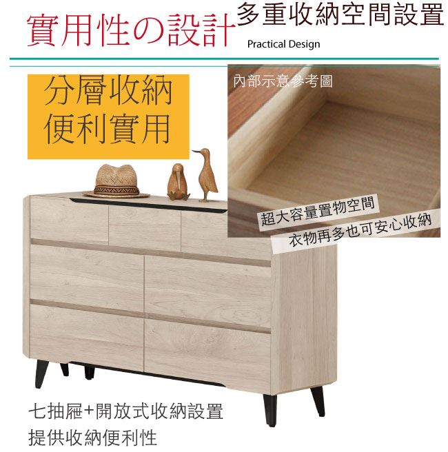 【綠家居】卡蘭 淺橡4尺七抽斗櫃/收納櫃
