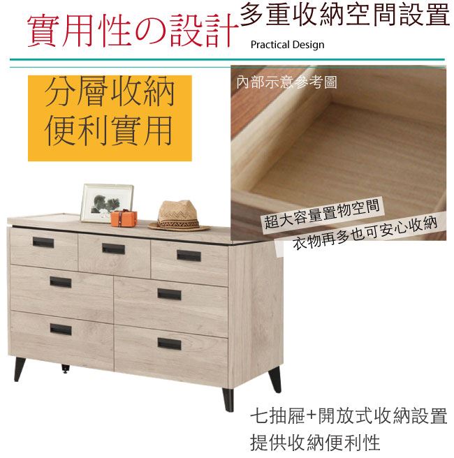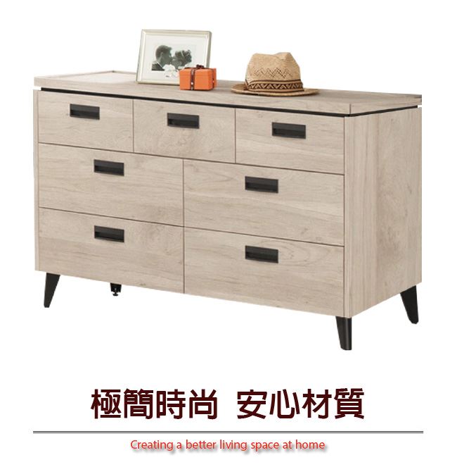 【綠家居】薇妮特 橡木紋4尺七抽斗櫃