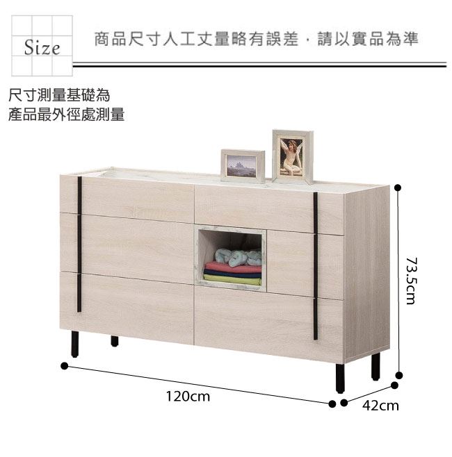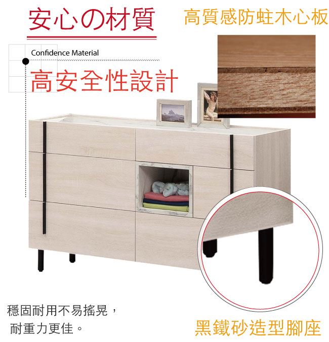 材質 | ◆產品名稱: 【綠家居】維肯 雙色4尺七抽斗櫃/收納櫃 尺寸:(寬)120x(深)40x(高)78/公分 ◆材質: 材質:防蛀木心板+五金滑軌結構+防鏽黑漆腳座 噴漆:防潮耐磨&亮面噴漆處理