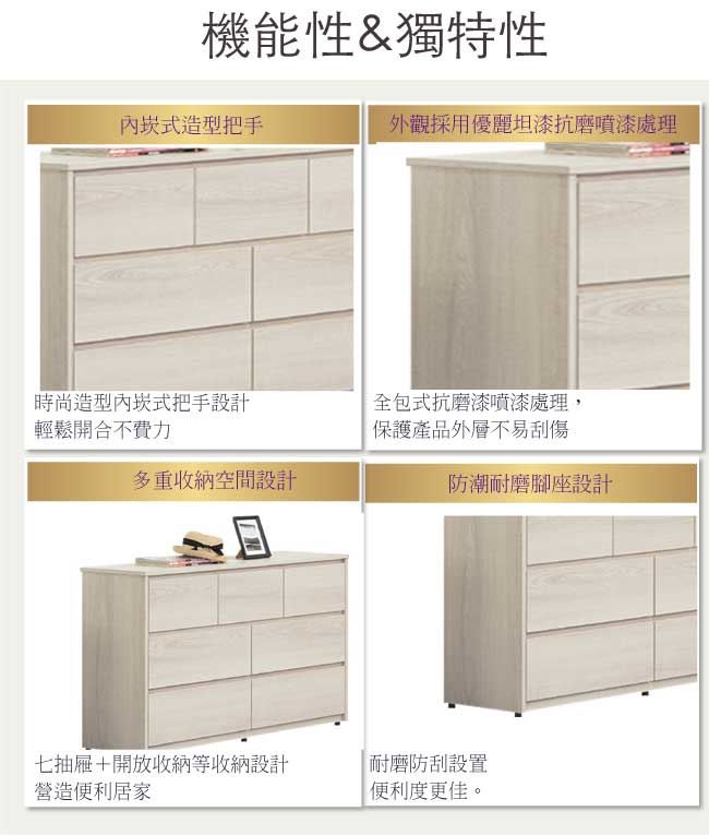 - ◆產品名稱:【綠家居】凱文4尺七抽斗櫃