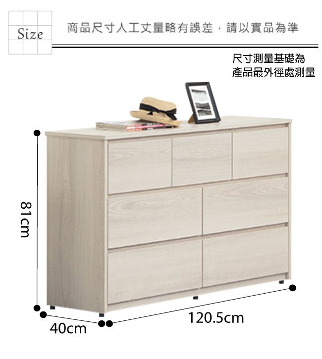 尺寸:(寬)120.5x(深)40(高)81/公分 ◆材質: 材質:防蛀木心板+防潮耐磨腳座+五金滑軌結構 噴漆:防潮耐磨噴漆處理