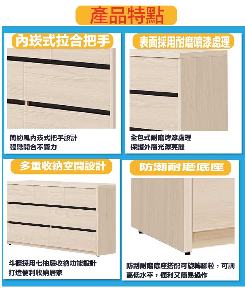 - 產品名稱:【綠家居】愛可4尺七抽斗櫃