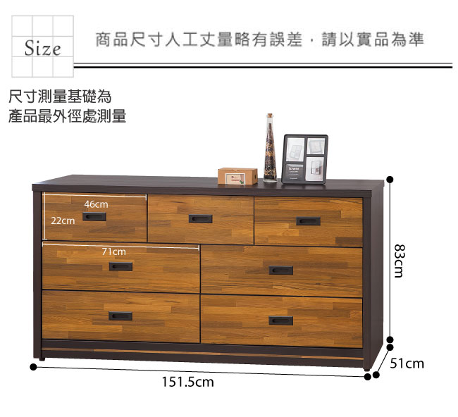 ◆產品名稱:【綠家居】艾里許 時尚5尺木紋雙色七斗櫃/收納櫃