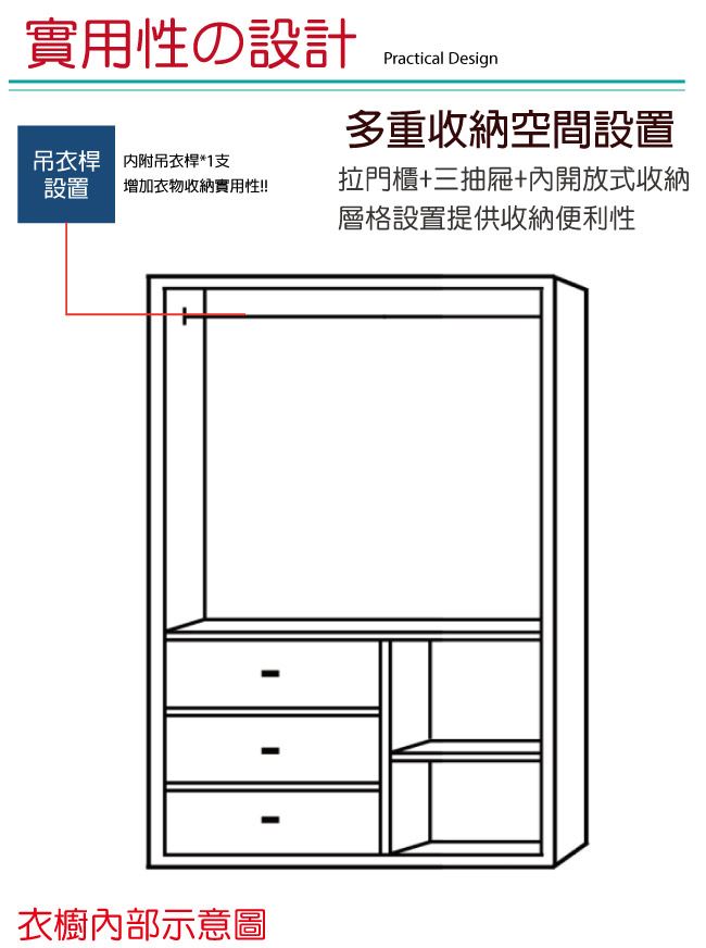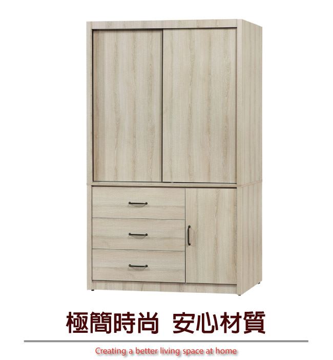 【綠家居】帝力 現代4尺推&開門三抽衣櫃/收納櫃(三色可選)