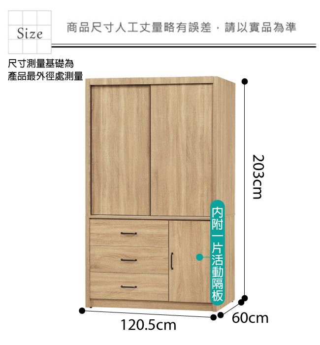 材質 | ◆產品名稱:【綠家居】 帝力 現代4尺推&開門三抽衣櫃/收納櫃(三色可選) 產品尺寸: 收納櫃尺寸:(寬)120.5x(深)60x(高)203/公分 ◆材質: 材質:防蛀木心板+防刮耐磨腳座 材質:五金滑軌結構 塗漆:優利坦全包式耐磨噴漆處理 |