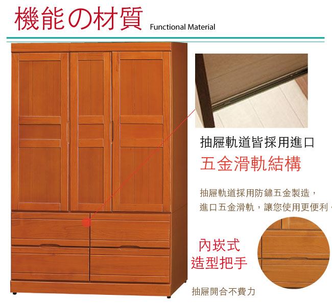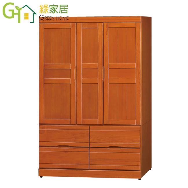 【綠家居】尼西亞 實木3.9尺三門四抽加高衣櫃/收納櫃(二色可選)