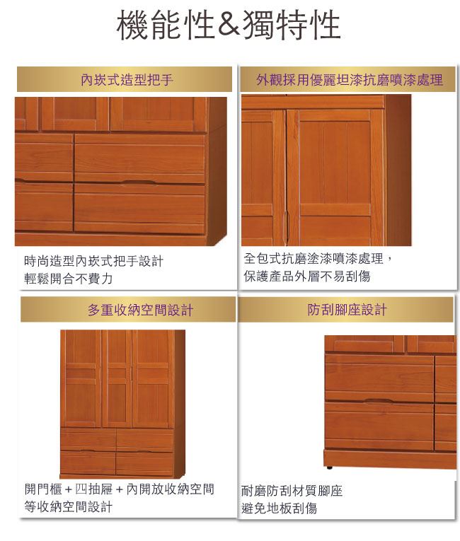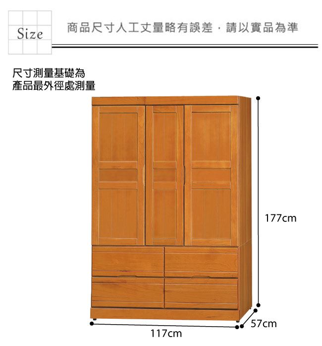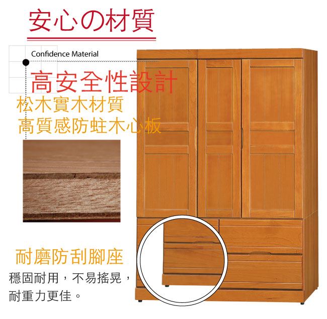 材質 | ◆產品名稱:【綠家居】尼西亞 實木3.9尺三門四抽加高衣櫃/收納櫃(二色可選) 尺寸:(寬)117x(深)57x(高)177/公分 ◆材質: 材質:松木實木+防蛀木心板+五金滑軌結構+防夾手緩衝門片五金 塗漆:優利坦全包式耐磨噴漆處理 |