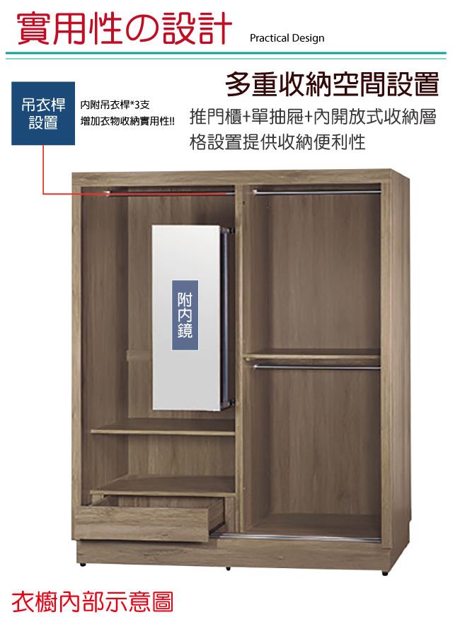 商品介紹 | 【綠家居】新德里 現代4.9尺推門衣櫃/收納櫃(穿衣鏡面+吊衣桿+單抽屜) 灰橡木紋色系+現代簡約風格+安心材質製造,整體採用防蛀木心板+五金滑軌結構+耐磨防刮腳座等安心材質製造,外層採用優利坦三層全包式耐磨塗漆塗裝處理搭配推門櫃+單抽屜+穿衣鏡面+吊衣桿+內開放式收納等收納設計,全由專人配送到家,專業安心服務,替你省下更多時間! 【商品特色】 灰橡木紋色系+現代簡約風格+安心材質製造,使用放心+搭配居家更便利 採用防蛀木心板+五金滑軌結構+耐磨防刮腳座等安心材質製造 推門櫃+單抽屜+穿衣鏡面+吊衣桿+內開放式收納等收納設計 此商品不需要DIY組立,此商品為組立後之成品 品質保證、專業設計、貼心服務 全由專人配送到家,專業安心服務,替您省下更多時間 |