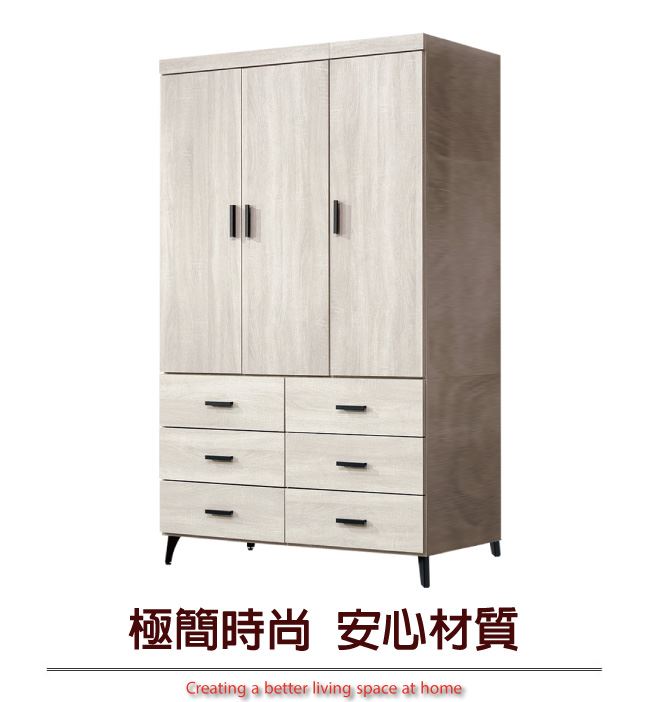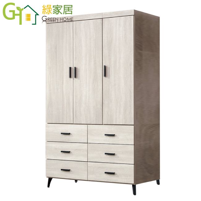 【綠家居】邁尼耶 時尚4尺三門六抽衣櫃/收納櫃