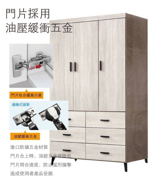 - 橡木紋色系+防夾手緩衝門片五金