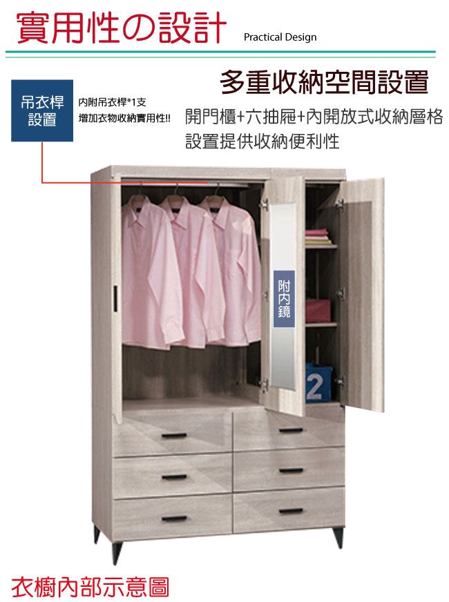- 吊衣桿+六抽屜+穿衣鏡面設置