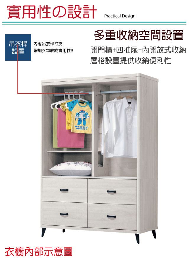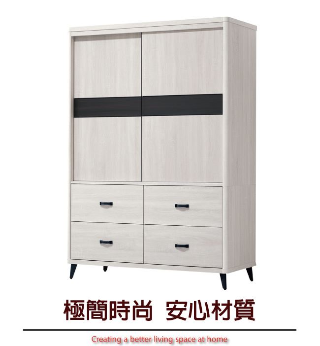【綠家居】蓋爾達 時尚4.5尺推門四抽衣櫃/收納櫃