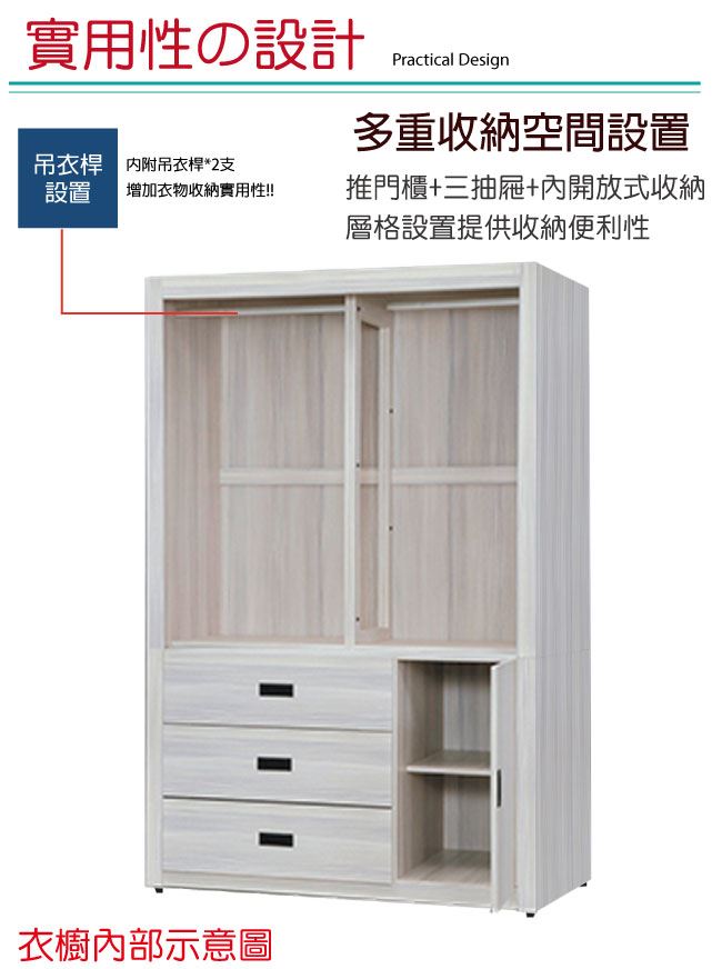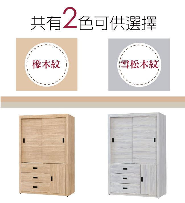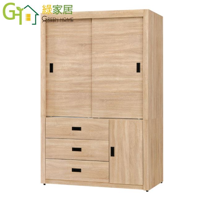 【綠家居】馬坎巴 時尚4尺推&開門三抽衣櫃/收納櫃(二色可選)