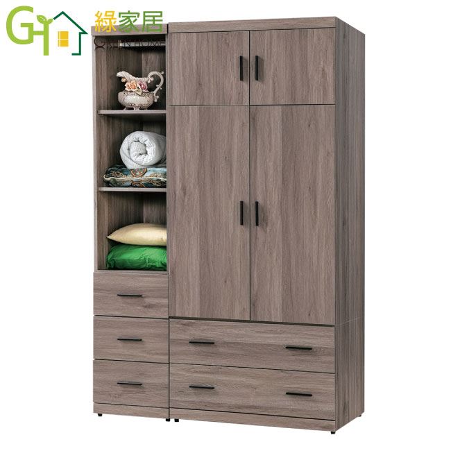 【綠家居】穆拉姆 時尚4尺四門七抽衣櫃/收納櫃組合(二色可選)