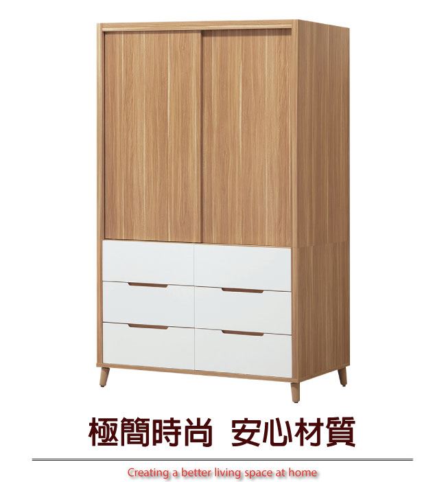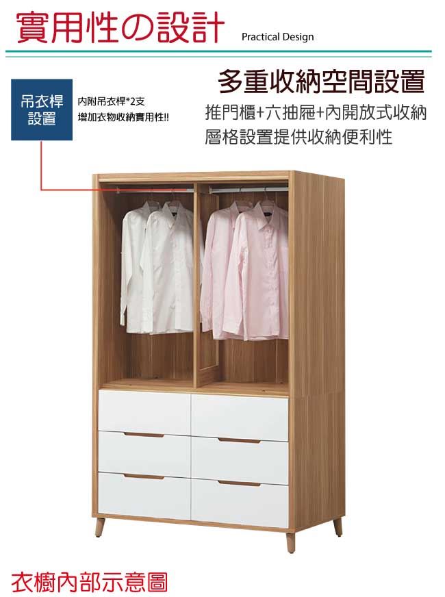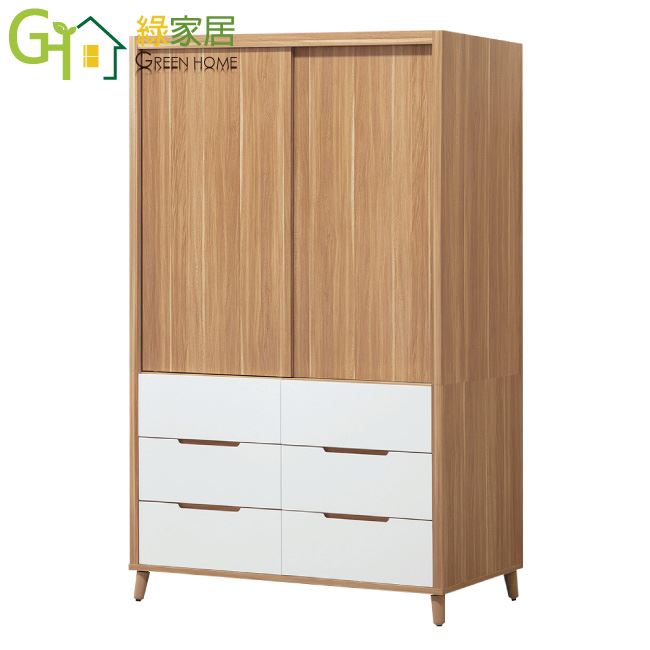 【綠家居】法克 雙色4尺推門六抽衣櫃/收納櫃