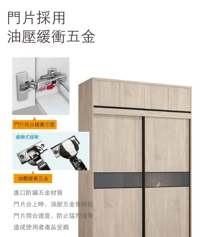 材質 | ◆產品名稱: 【綠家居】薇妮特 4.1尺橡木紋開&推門加高衣櫃組合 產品尺寸: 尺寸:(寬)122.5x(深)60x(高)236/公分 ◆材質: 材質:防蛀木心板+防潮耐磨腳座 材質:防夾手緩衝門片五金+五金滑軌結構 塗漆:優利坦全包式耐磨噴漆處理