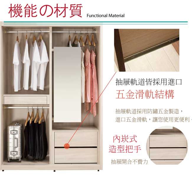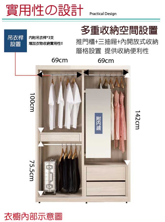 【綠家居】海多娜 橡木紋4.9尺推門衣櫃