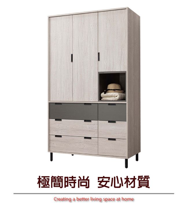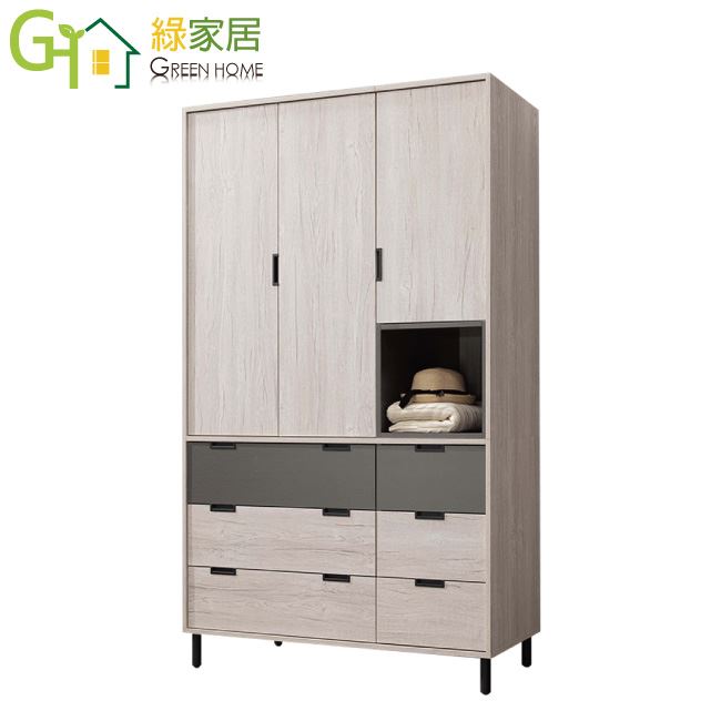 【綠家居】古利德 雙色4尺三門六抽衣櫃/收納櫃