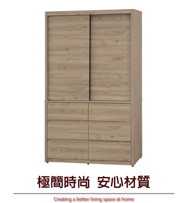 【綠家居】約拿 時尚4尺推門六抽衣櫃/收納櫃(二色可選)