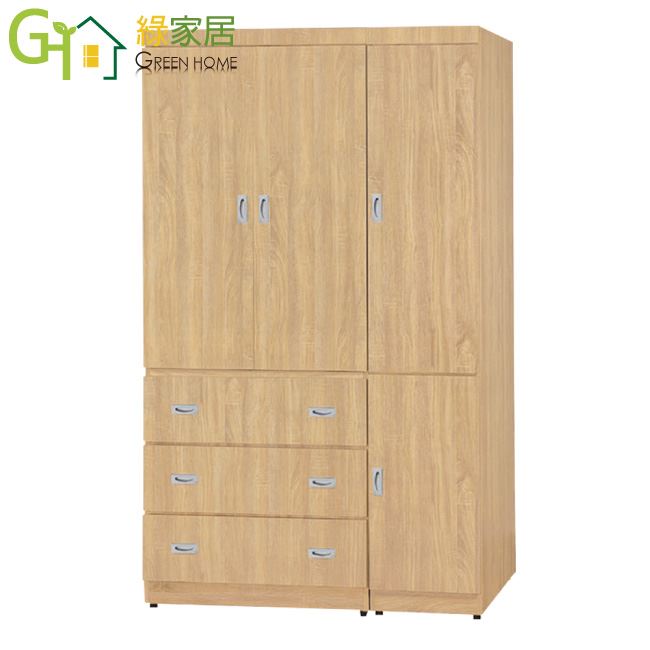 【綠家居】比勒 時尚4尺四門三抽衣櫃/收納櫃(附穿衣鏡面)