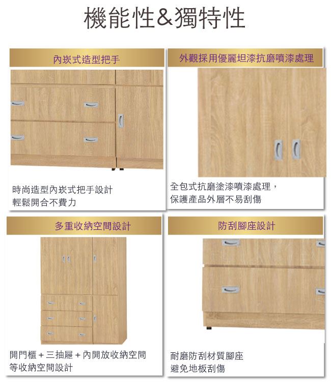 - 防潮耐磨腳座+橡木紋色