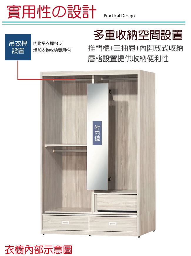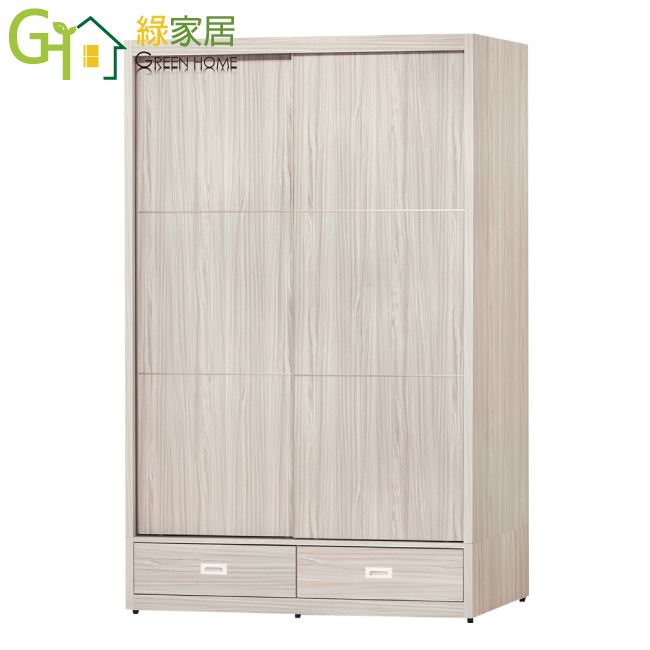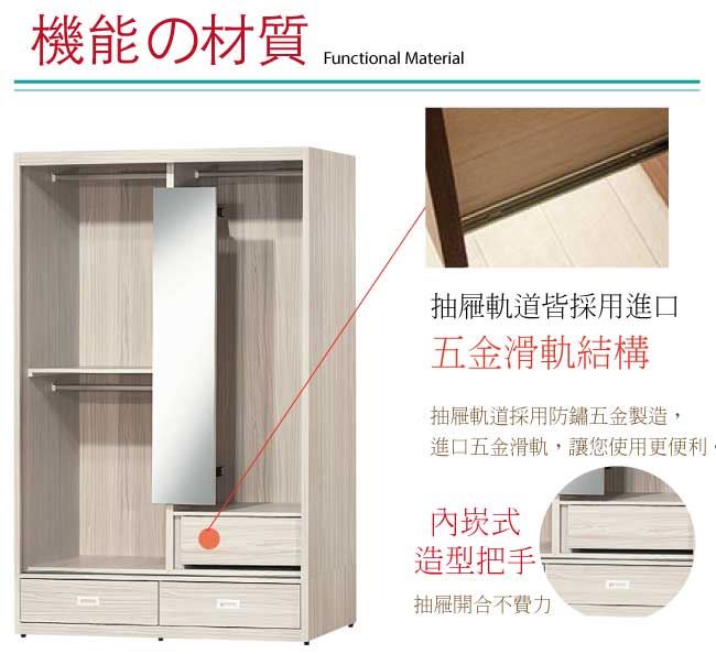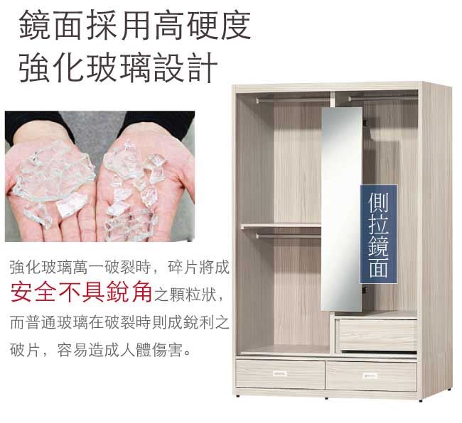 【綠家居】福瑞 梣木紋4.7尺推門二抽高衣櫃(含穿衣鏡面)