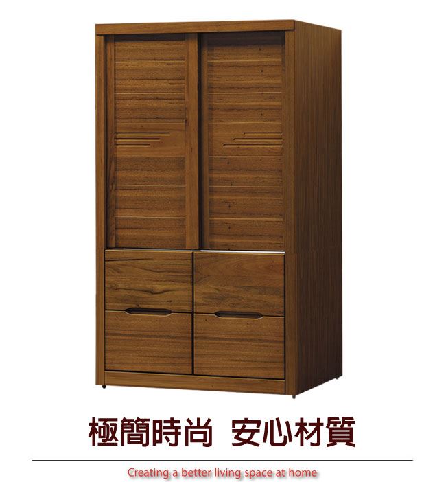 商 品 介 紹 | 【綠家居】柏林 時尚4尺實木推門四抽衣櫃/收納櫃 樟木紋色系+現代簡約風格+安心材質製造,整體採用樟木實木+防蛀木心板+五金滑軌結構+防刮耐磨腳座等安心材質製造,外層採用防潮耐磨噴漆處理搭配採用推門櫃+四抽屜+內開放式收納層格等收納空間設計,全由專人配送到家,專業安心服務,替你省下更多時間! 【商品特色】 樟木紋色系+現代簡約風格+安心材質製造,使用放心+搭配居家更便利 採用樟木實木+防蛀木心板+五金滑軌結構+防刮耐磨腳座等安心材質製造 採用推門櫃+四抽屜+內開放式收納層格等收納空間設計 此商品不需要DIY組立,此商品為組立後之成品 品質保證、專業設計、貼心服務 全由專人配送到家,專業安心服務,替您省下更多時間 |