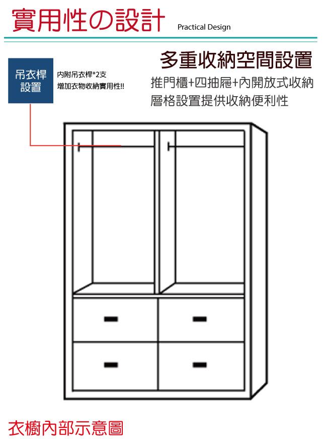 【綠家居】柏林 時尚4尺實木推門四抽衣櫃/收納櫃