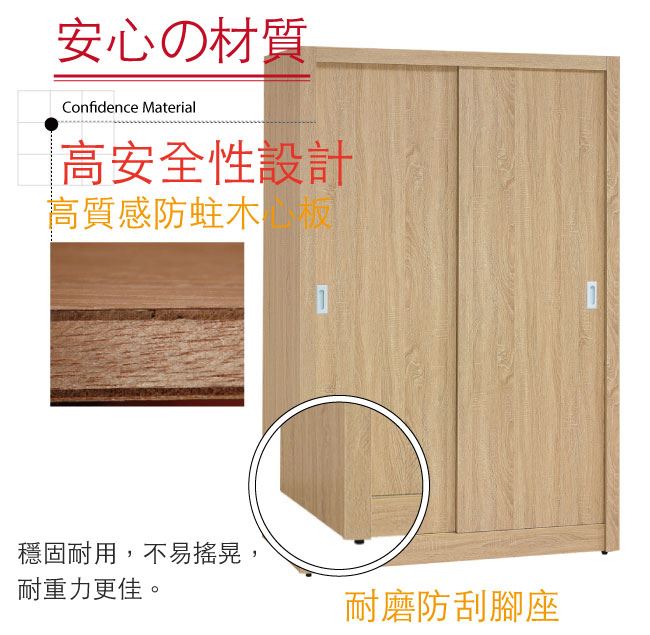 防蛀木心板+五金滑軌結構