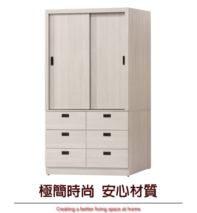 【綠家居】提米 時尚4尺推門六抽衣櫃/收納櫃