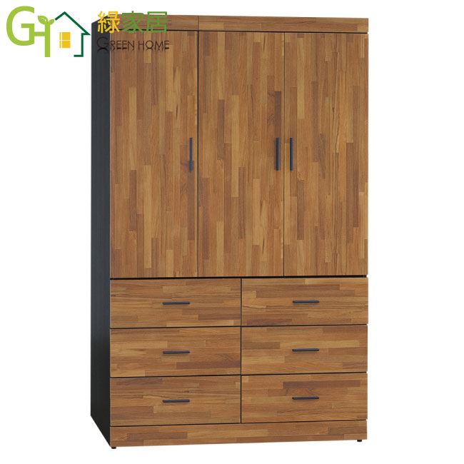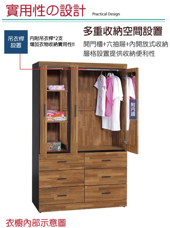 【綠家居】麥菲凱 時尚4.1尺三門六抽衣櫃/收納櫃(附穿衣鏡面)