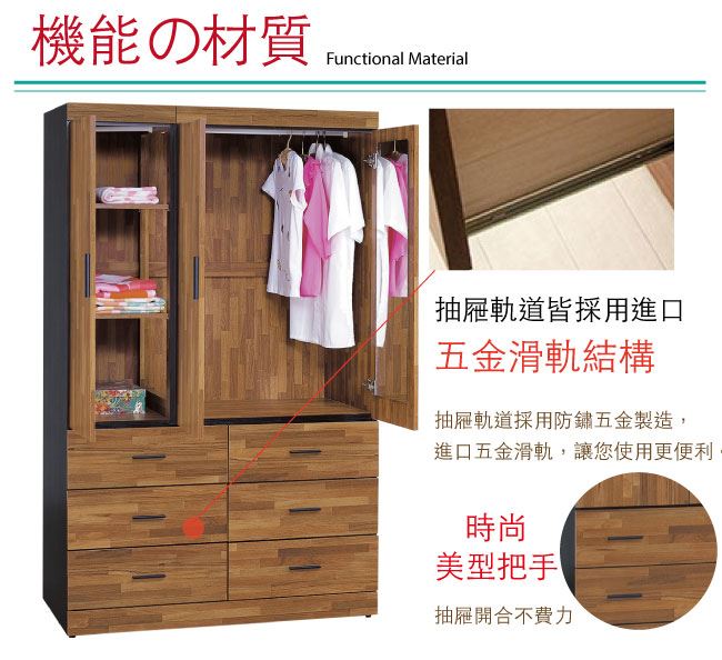 商 品 介 紹 | 【綠家居】麥菲凱 時尚4.1尺三門六抽衣櫃/收納櫃(附穿衣鏡面) 木紋雙色系+現代簡約風格+安心材質製造,整體採用防蛀木心板+防潮耐磨腳座+五金滑軌結構+防夾手緩衝門片五金等安心材質製造,外層採用全包式防潮耐磨噴漆處理搭配採用開門櫃+吊衣桿+六抽屜+內開放式收納層格+穿衣鏡面等收納空間設計,全由專人配送到家,專業安心服務,替你省下更多時間! 【商品特色】 木紋雙色系+現代簡約風格+安心材質製造,使用放心+搭配居家更便利 採用防蛀木心板+防潮耐磨腳座+五金滑軌結構+防夾手緩衝門片五金等安心材質製造 採用開門櫃+吊衣桿+六抽屜+內開放式收納層格+穿衣鏡面等收納空間設計 此商品不需要DIY組立,此商品為組立後之成品 品質保證、專業設計、貼心服務 全由專人配送到家,專業安心服務,替您省下更多時間 |