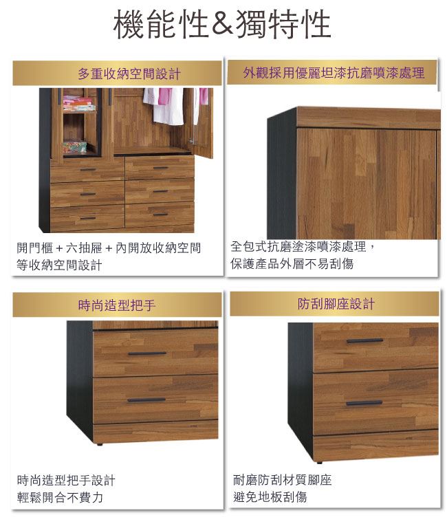 - 開門櫃+吊衣桿+六抽屜