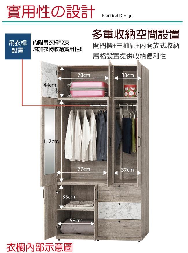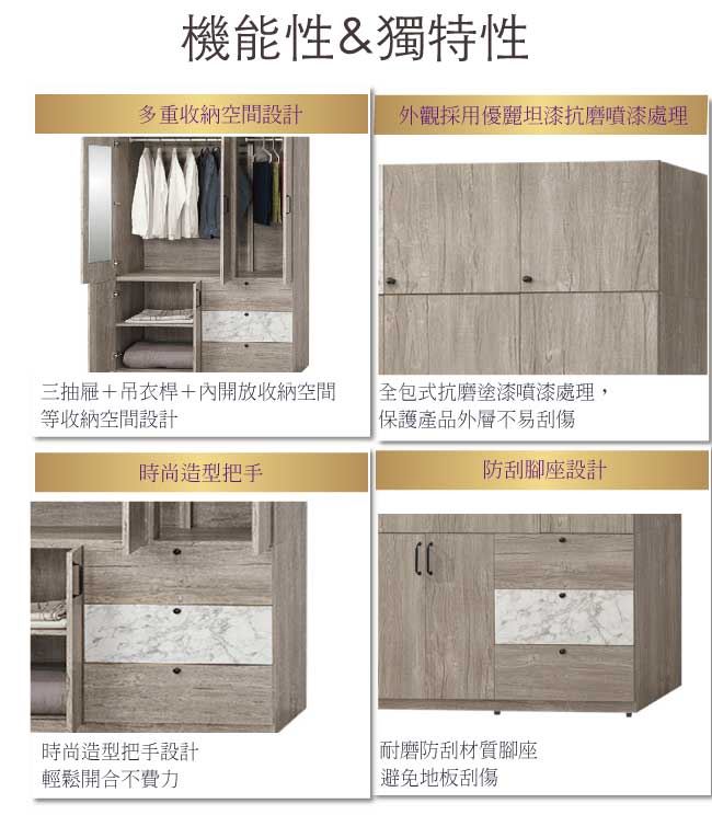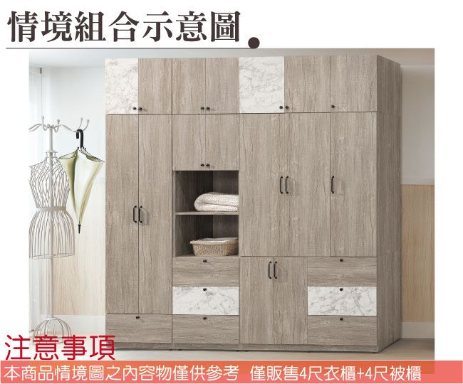 - ◆產品名稱:【綠家居】美利4尺八門三抽加高衣櫃/收納櫃組合