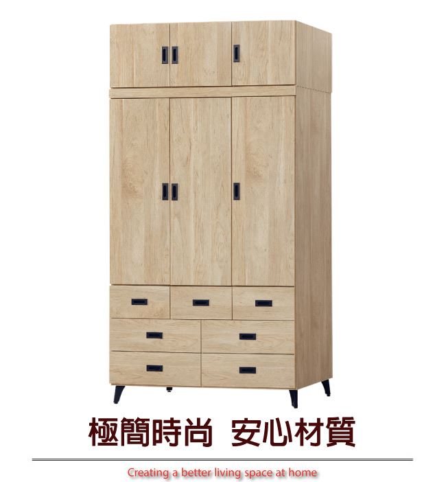 - ◆產品名稱:【綠家居】利泰4尺六門七抽加高衣櫃/收納櫃組合