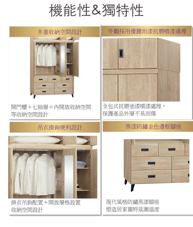 - 開門櫃+七抽屜+吊衣桿