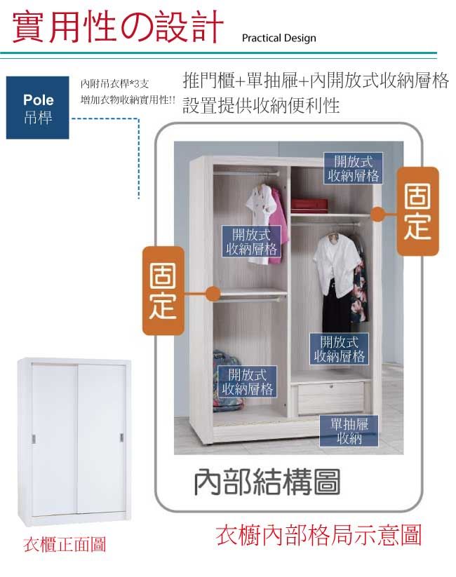 【綠家居】艾瑟斯 時尚4.1尺推門衣櫃(二色可選)