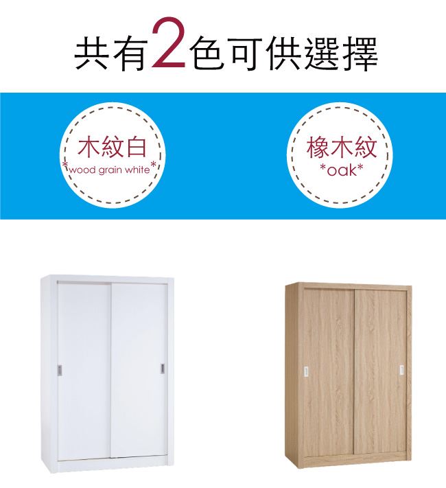 - W111-3白色+111-4原橡耐磨4.1尺衣櫃1