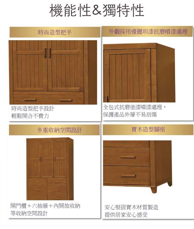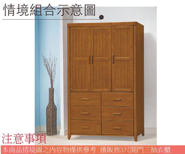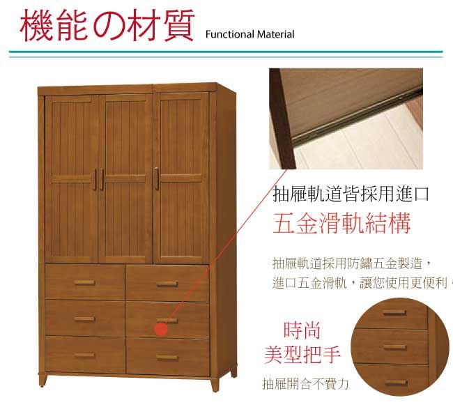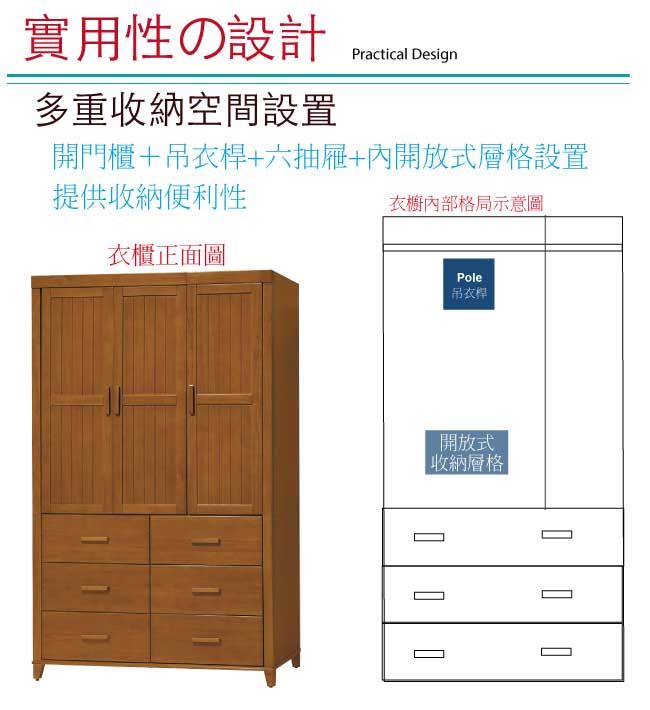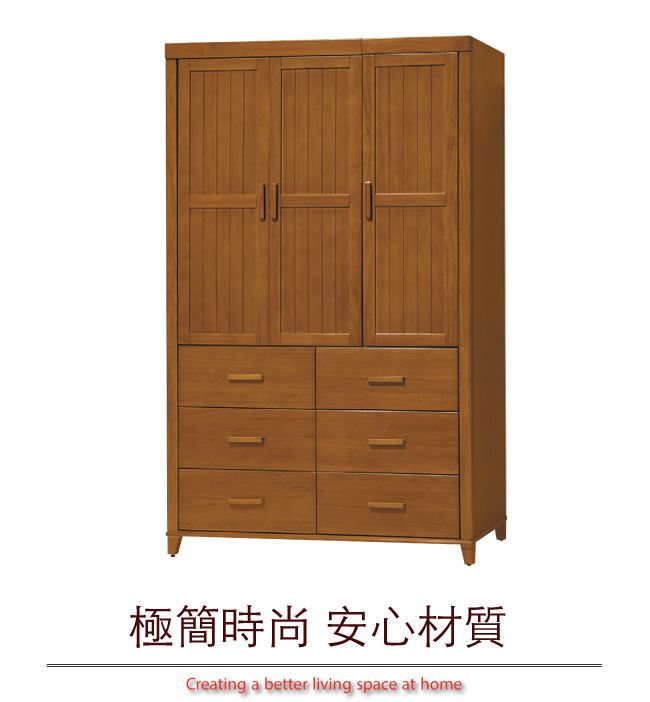 【綠家居】梅利實木4尺三門六抽衣櫃